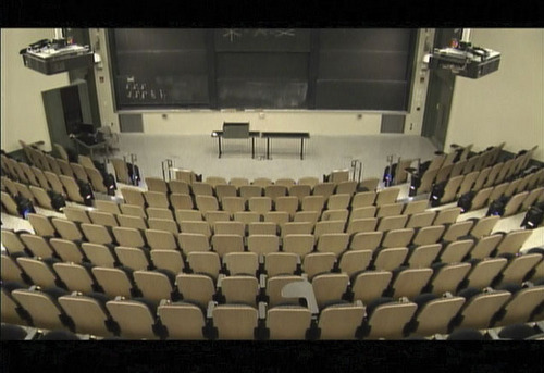 The students were seated in the tenth row from the front, apparently the furthest back row visible on the camera.