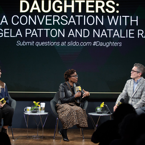 WBUR reporter Simón Rios (right) hosts a conversation with ‘Daughters’ documentary directors Natalie Rae (left) and Angela Patton (center) at WBUR CitySpace on Friday, March 27, 2026.