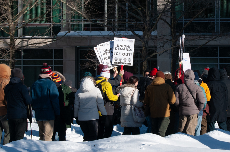 Protesters gather in Hockfield Court before heading to the anti-ICE rally in Copley Square on Friday, Jan. 30, 2026.