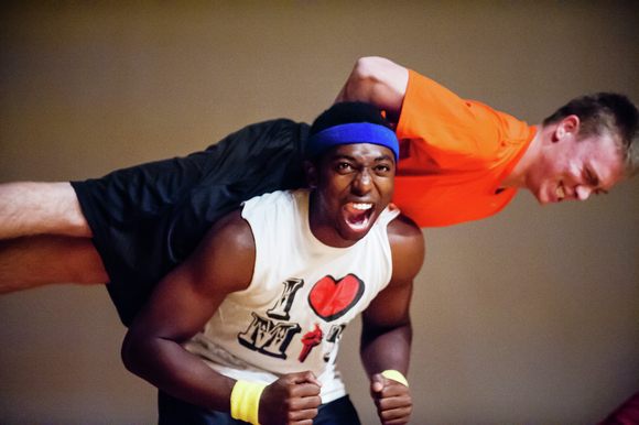 John O. Bolaji ’16 squats a fellow Kappa Sigma brother on stage at Sunday evening’s Late Night event. There were more than twenty acts in this year’s philanthropic event, which is hosted by Sigma Kappa sorority. All profits go towards the Sigma Kappa Foundation to support Alzheimer’s research.