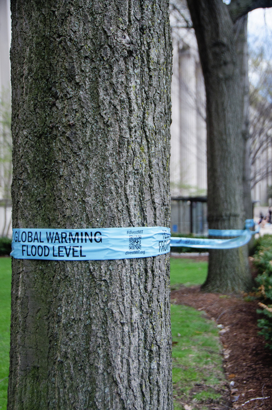 Last Friday, members of Fossil Free MIT put up blue caution tape around campus, showing where the water level will be during a storm surge like the one caused by Hurricane Sandy, after the projected 2050 sea level rise. The group did so to correspond to the sixth MIT Sustainability Summit over the weekend, with the theme of “Coastal Cities -- Sustainable Future”.