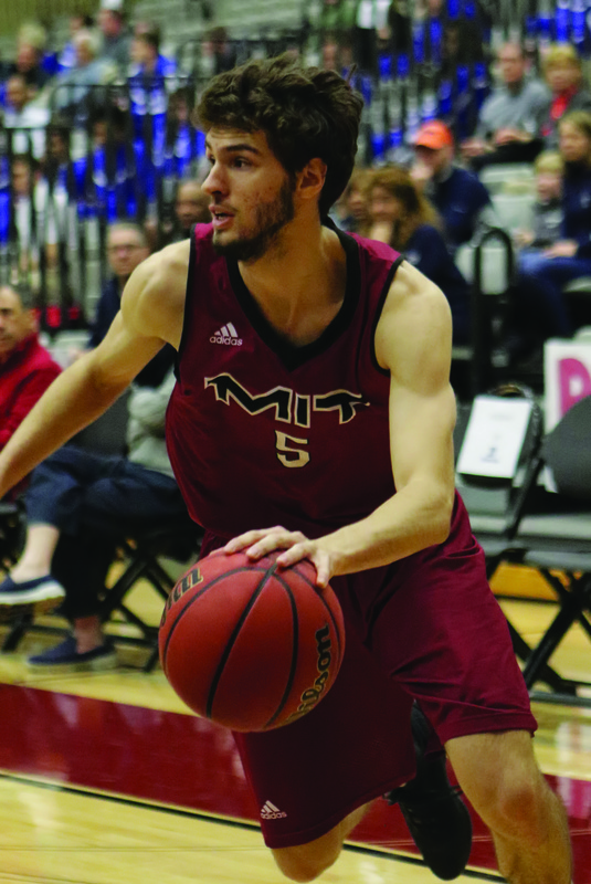 Bradley Jomard ’19 drives to the basket for the No. 19 MIT Engineers in a 79–76 win over Middlebury College in the NCAA Sweet 16. The Engineers lost the following day to Ramapo in the Elite 8.