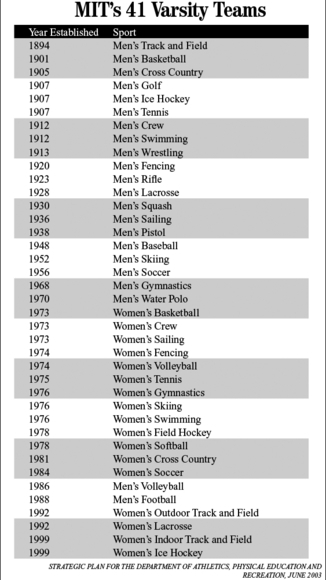 Every visiting committee which has reviewed MIT’s athletics externally has questioned whether Institute resources can sustain 41 varsity sports, the most of any school in the country.