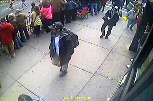 In the pictures released by the FBI yesterday evening, Suspect No. 1 wears a dark hat, and Suspect No. 2 a white hat. FBI have identified Suspect No. 2 planting a bomb within minutes of it going off, said Special Agent Richard DesLauriers, who is in charge of the Boston FBI office. Afterwards, Suspect No. 2 went west on Boylston, while it is unclear where suspect No. 1 went. A video is available on the Boston Globe, and the authorities plan to release more images soon.