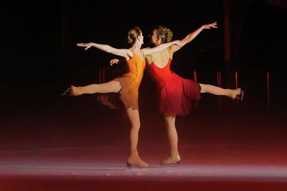 Jessica Huot ’06 (left) and Elisa Angeli (right) perform in Falling Leaves, choreographed by Douglas Webster, for Ice Theatre of New York.