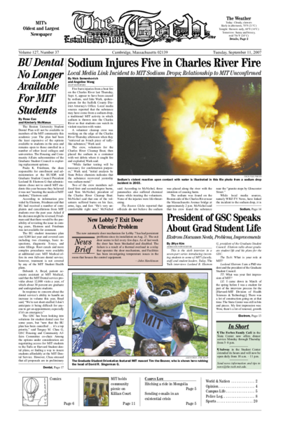 <i>The following incidents were reported to the MIT Police between Aug. 13 and Sept. 5, 2007. This summary does not include incidents such as false alarms, general service calls, larcenies, or medical shuttles.</i>
