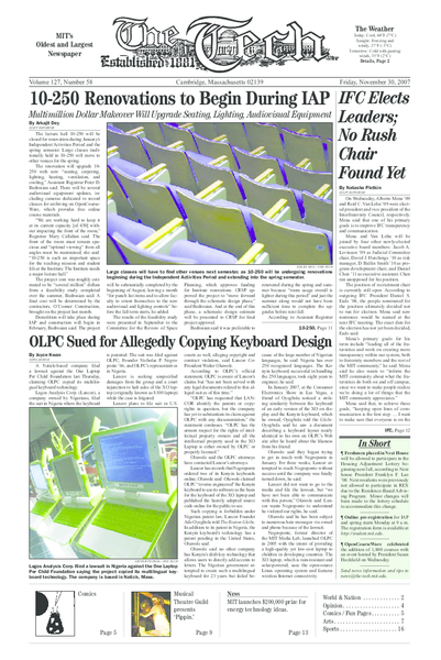 The lecture hall 10-250 will be closed for renovation during January’s Independent Activities Period and the spring semester. Large classes traditionally held in 10-250 will move to other venues for the spring.