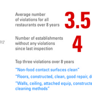 Since February 2004, the City of Cambridge has made available on its website a regularly-updated database of restaurant inspection reports. Our team scraped the data that was available online, including each restaurant’s name, location, and history of violations. We classified these restaurants into four basic categories: on-campus options (including dining halls), shops, fraternities, and food trucks. These restaurants were plotted on a map of Cambridge along with line charts that show the number of violations they accrued over time. Finally, we scraped data from local search and reviews website Yelp to provide more contextual information about these businesses. We will continue to renew this data as it is updated in the future.