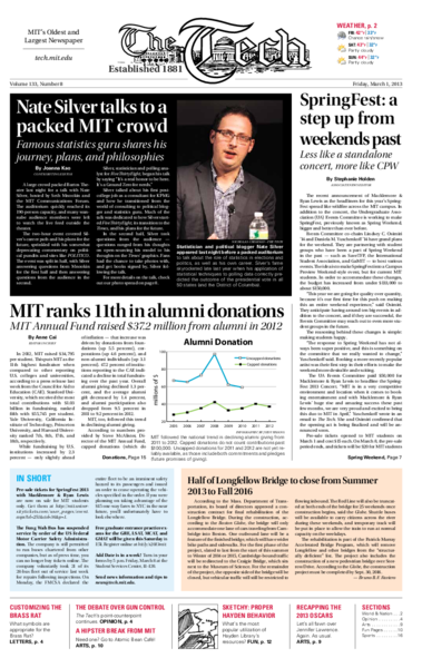 In 2012, MIT raised $34,795 per student. This puts MIT as the 11th highest fundraiser when compared to other reporting U.S. colleges and universities, according to a press release last week from the Council for Aid to Education (CAE). Stanford University, which received the most total contributions with $1.03 billion in fundraising, ranked fifth with $55,745 per student. Yale University, California Institute of Technology, Princeton University, and Harvard University ranked 7th, 8th, 17th, and 18th, respectively.