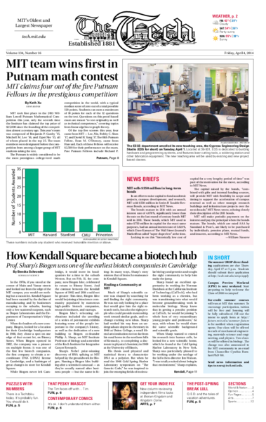 MIT took first place in the 2013 William Lowell Putnam Mathematical Competition this year, only the seventh time the Institute has claimed the top prize of $25,000 since the founding of the competition almost a century ago. This year’s team was composed of Benjamin P. Gunby ’15, Mitchell M. Lee ’16, and Zipei Nie ’15, all of whom placed in the top 25. The team members were designated before the competition from among a larger group of MIT students taking the test.