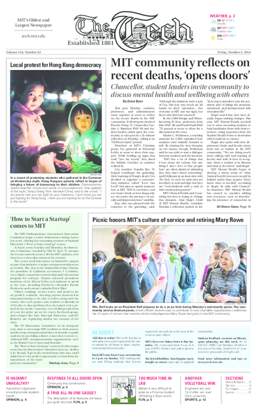 This past Monday, students, professors, and administrators came together at noon to reflect on the recent deaths in the MIT community. Following the death of Phoebe Wang ’17, Chancellor Cynthia A. Barnhart PhD ’88 and student leaders called upon the community to take part in a 15-minute reflection on Monday, calling it an “All Doors Open” period.