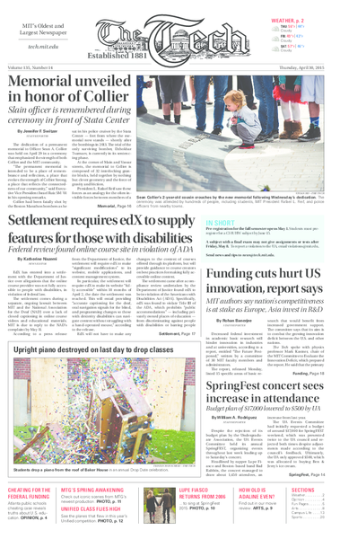 The dedication of a permanent memorial to Officer Sean A. Collier was held on April 29 in a ceremony that emphasized the strength of both Collier and the MIT community.