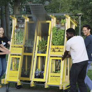 Pumpkins line the roof of Tang Hall before the annual Pumpkin Drop on Saturday, Oct. 25, 2025.