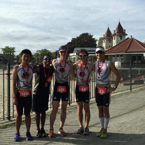 Members of the MIT Triathalon team pose after the Westchester Triathlon held Sept. 27 at the Rye Town Park Beach in Rye, New York.