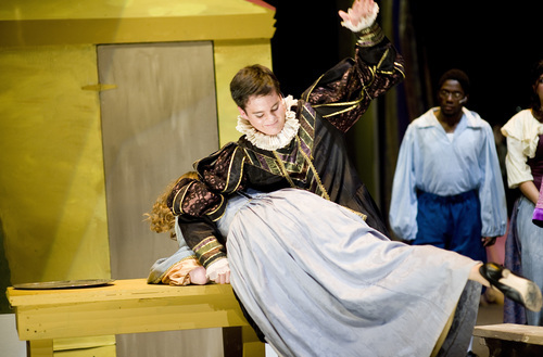 Things get a bit out of hand onstage during “The Taming of the Shrew: The Musical,” resulting in Fred Graham (Justin D. Breucop ’12) disciplining Lilli Vanessi (Kerry Brooke Steere).