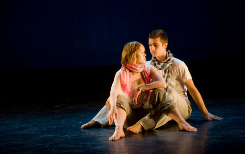 Amelia L. Laughton ’06 and Thaddeus R. Cybulski ’10 perform at Dance Troupe’s dress rehearsal for the coming up show “Insomnia.”