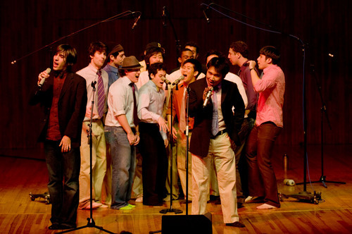Soloists Michael R. Miller ’09 (front left) and Bryan K. Koo ’09 (front center) sing “Get Over It” by OK Go at the Logarhythms’ Winter Concert on December 12 in Kresge Theater. See page 6 for more photos from the concert.