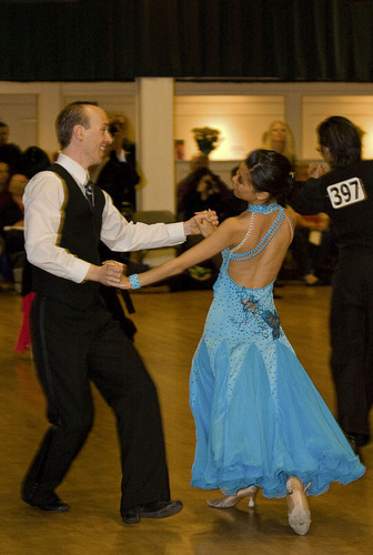 YaaLirng Tu G and Jeff McCollum dance to the gold in the American Smooth as part of the MIT Ballroom Dance Team on Nov. 9 at the Brown Ballroom Dance Competition.