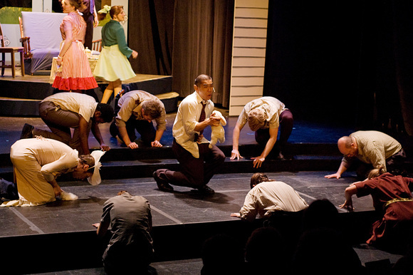 The life of a bunny hangs in the balance as Bat Boy (Steven L. Camina G) battles his hunger for blood on Thursday evening during MTG’s rendition of Bat Boy: The Musical in Little Kresge.