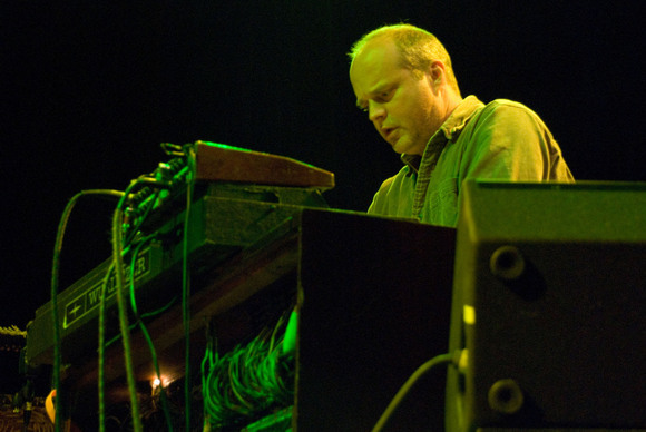 John Medeski of Medeski, Martin & Wood stands up to solo one of his many keyboards on November 13 at the House of Blues. In concert, he’s typically surrounded by a collection of old organs, electronic keyboards, and even a grand piano.