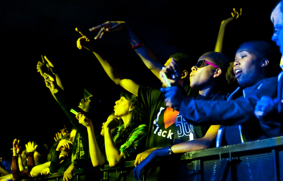 A mix of students and Boston locals rock out to Super Mash Bros.’ mixes at the Spring Weekend concert on Friday. The crowd particularly enjoyed the mashups that the group produced live.