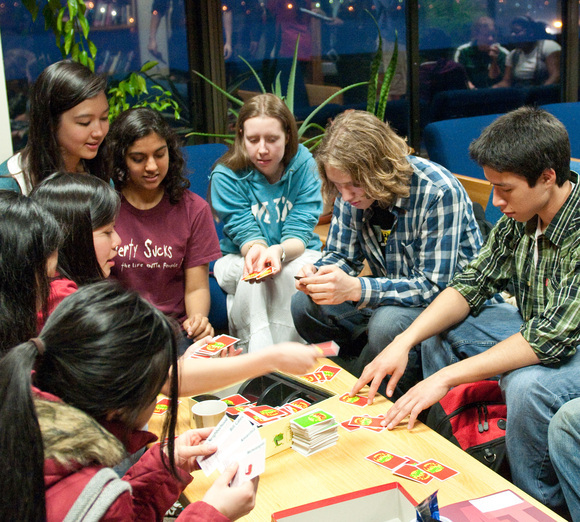 Prospective freshmen play “Apples to Apples” on Thursday evening as part of McCormick’s CPW event.
