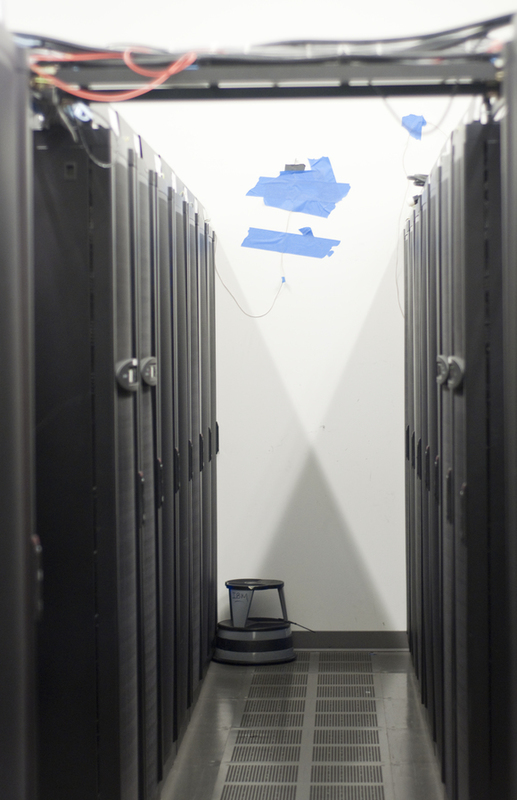 Supercomputers stand in one of the machine rooms at CSAIL on Wednesday. After two water chillers at the central cooling plant failed on Tuesday, CSAIL was forced to shut down inessential machines to avoid overheating. The water chillers were repaired within a few hours. Cooling failures occur at least two or three times per year, often in the summer months. Melissa Renee Schumacher—The Tech
