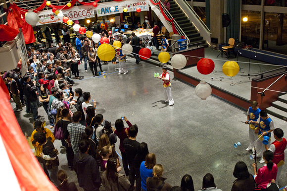 Nightmarket visitors gather to watch Chinese Yo-yo performances on Saturday night in Lobdell. Nightmarket is an annual festival held by Asian culture clubs on campus.