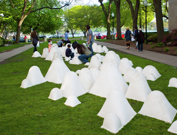 Visitors play in the Gradated Field, one of the many FAST installations that appeared on campus in early May. Gradated Field was a collection of smooth, white plaster mounds formed by latex sheets.