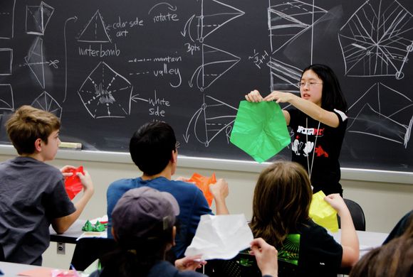 Michelle Fung ’13 shows students how to fold a pentagonal rose during OrigaMIT’s first origami conference on Saturday. Melissa Renee Shumacher—The Tech May. 9, 2016 Facebook Twitter Reddit Print Michelle Fung ’13 shows students how to fold a pentagonal rose during OrigaMIT’s first origami conference on Saturday. Melissa Renee Shumacher—The Tech