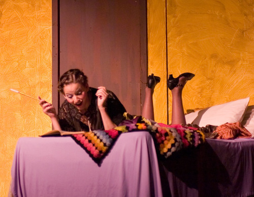 Cabaret character Sally Bowles (Mia A. Shandell ’10) flips through the pages of Mein Kampf, which she mistakenly assumes her new lover wrote. The Musical Theater Guild’s Cabaret will run for the next two weekends (Thursday through Saturday) at 8 p.m. in Kresge Little Theater.