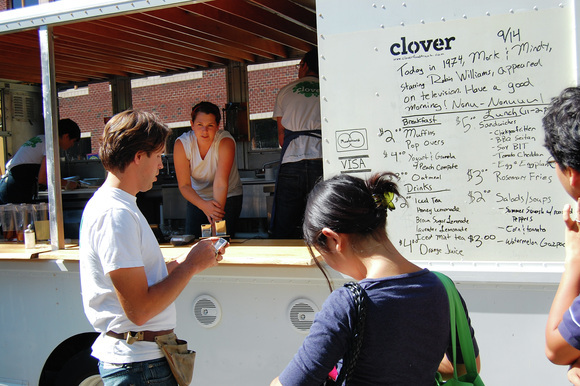 Ayr Muir ’00, owner of the Clover Food Truck, uses an iPhone to take down orders and send them to Clover employees. The truck is located outside of MIT Medical and is open from 8 a.m. to 2:30 p.m.