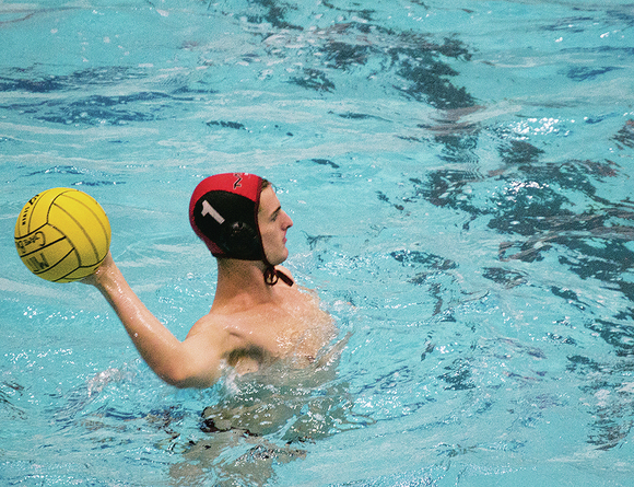 Goalie Noal Kruse throws the ball across the pool in the men’s water polo game against Fordham University on Saturday, September 27. MIT narrowly lost 7–6.