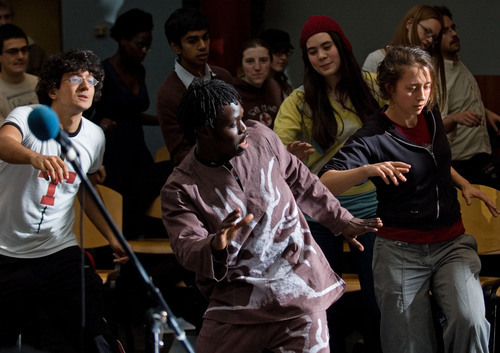 Paa Seck leads a lively dance in Rambax MIT’s “Takusaanu Dakar” in Lobdell on Saturday, Dec. 8. The night consisted of traditional Senegalese music and performances by Group Saloum. Rambax is co-directed by artist-in-residence Lamine Touré (who is also a member of Group Saloum) and Patricia Tang.