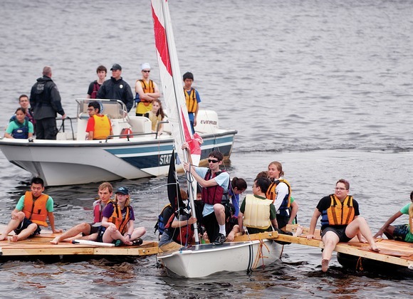 The 36 people the Next Sail team managed to fit on a highly modified tech dinghy was enough to attract the attention of the Massachusetts State Police during the MIT Sailing Challenge on Friday, May 16.
