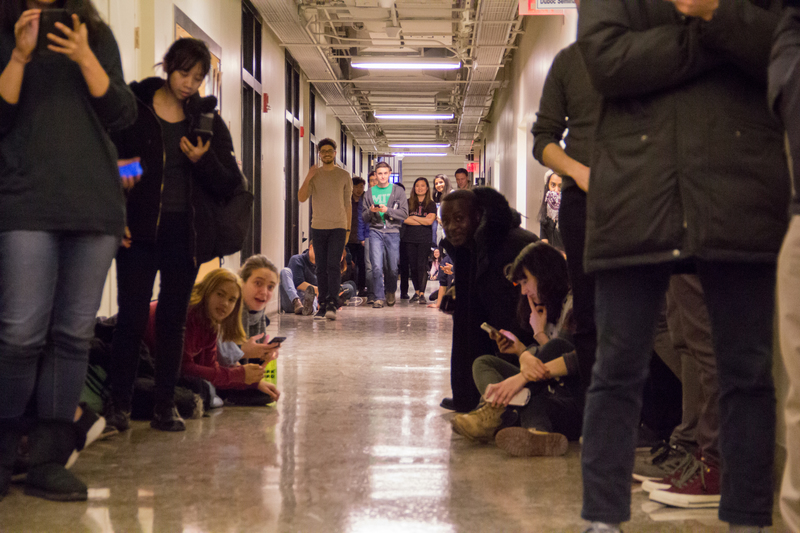 Students await for MIThenge Jan. 30, only to be dismayed by the presence of clouds blocking the light of the setting sun.