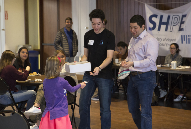 MIT's Society of Hispanic Professional Engineers host their annual "Noche de Ciencias" fair Wednesday, inviting K-12 students to explore STEM activities. As part of the event, prizes are raffled off to visiting students.